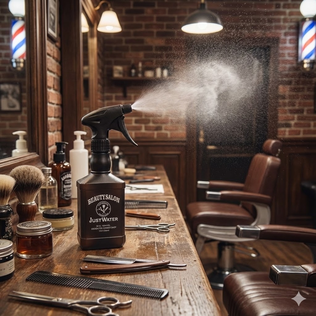 ✅ 復古職人風格: 瓶身印有精緻理髮廳標誌與剪刀圖案,提升店內專業形象。