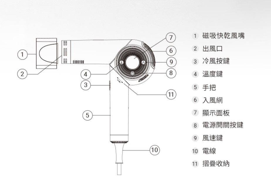 ◆ 高速乾髮技術:搭載無刷高速馬達,風速更快,乾髮更高效。