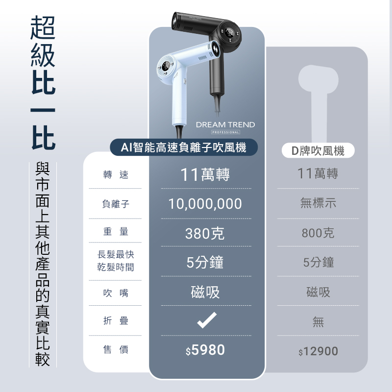 DREAM TREND 凱夢 AI智能高速負離子吹風機