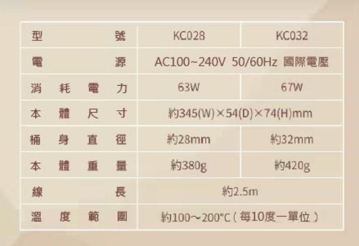 溫度調整: 100~200℃ (每10℃為單位調溫)