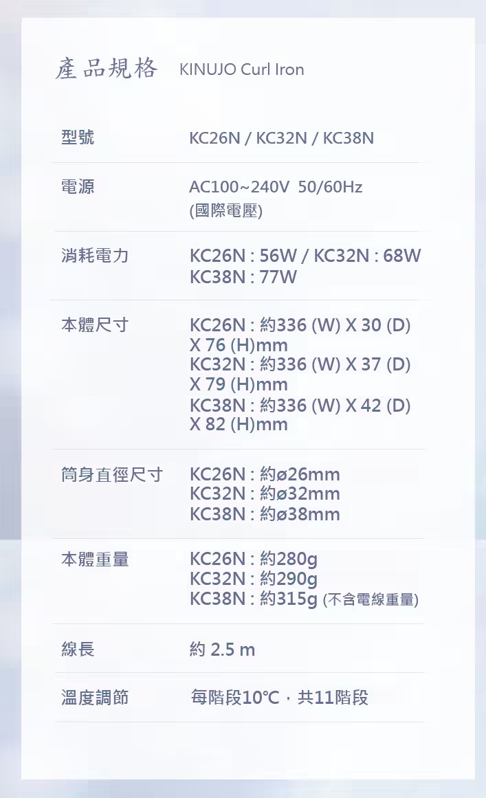 KINUJO CURLING IRON 日本保濕電棒捲 26mm/32mm/38mm