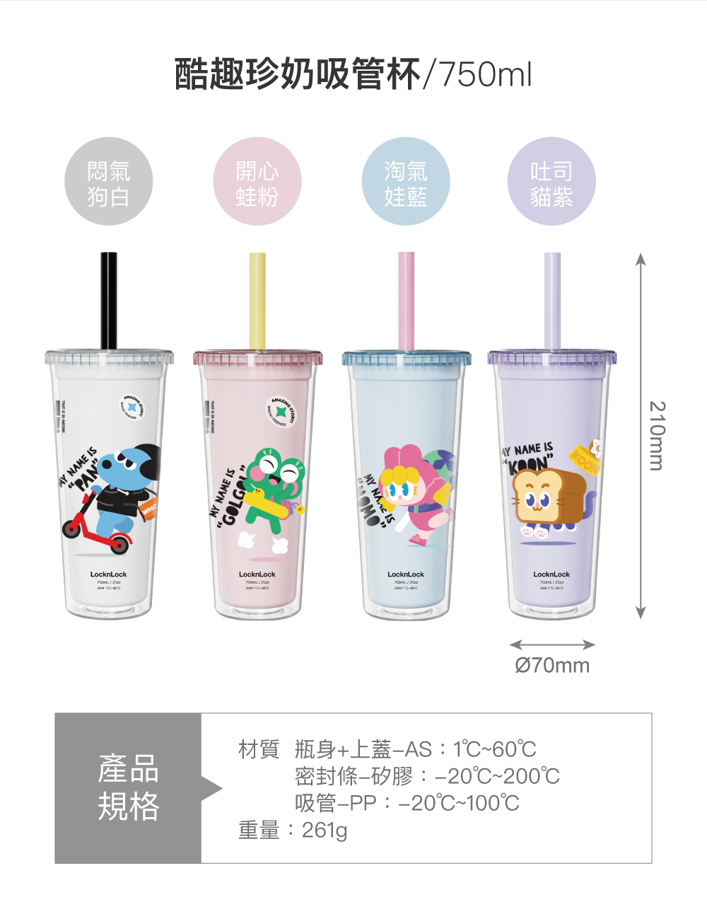 750ml大容量雙層杯身,冰飲不冒水珠不凍手