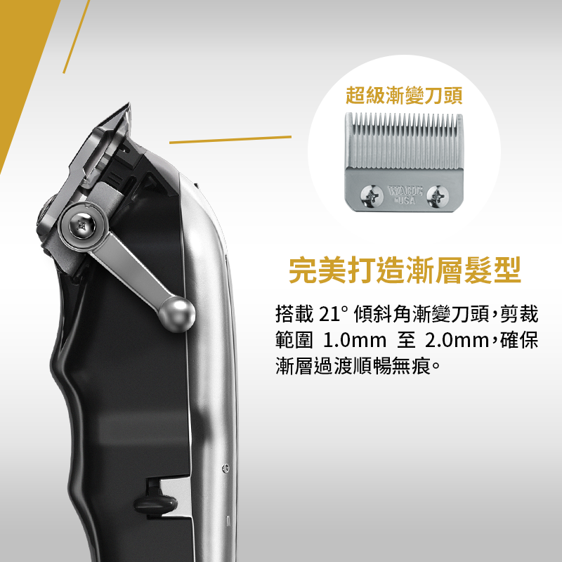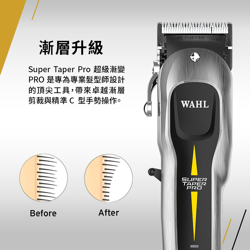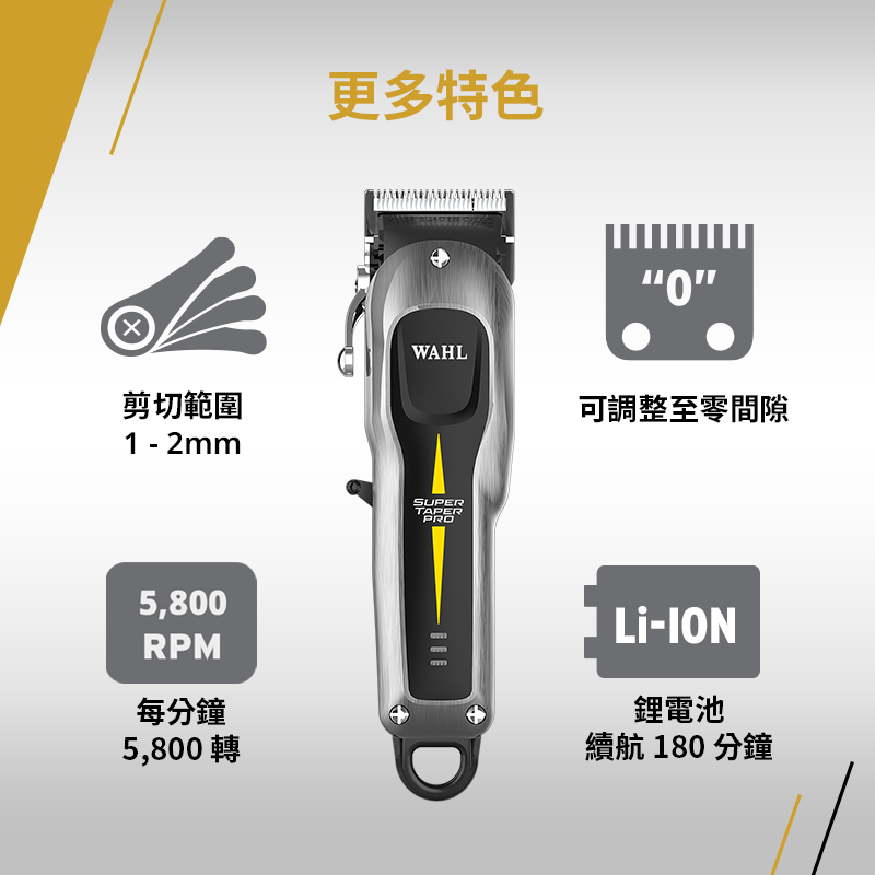 WAHL Super Taper Pro 採用無刷馬達設計,動力更強、運轉安靜且壽命更長。