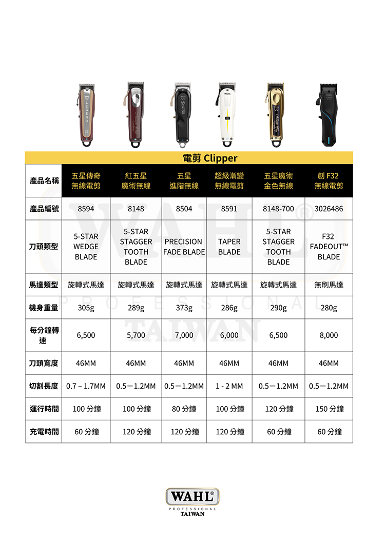 產地: 美國設計,中國製造(WAHL 原廠監製)